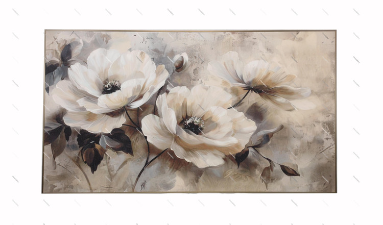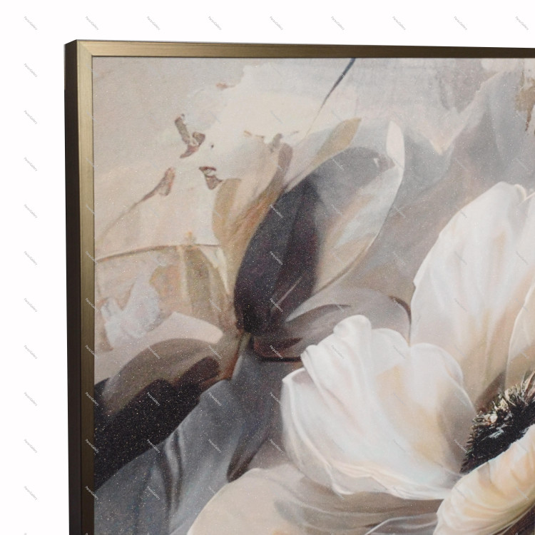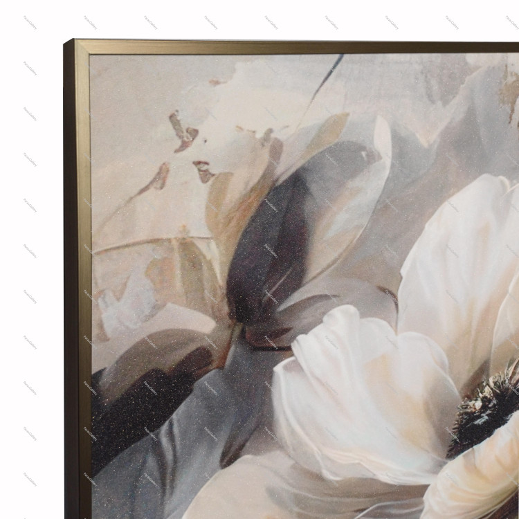 تابلو دکوراتیو گل سفید با لمینت شاین و قاب شامپاینی – ابعاد ۱۷۰×۹۰ سانتیمتر
